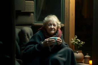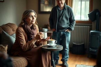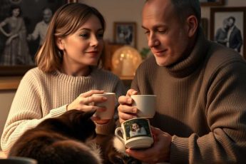 “Good morning, love.” He wakes up a minute before the alarm, as alwaysa habit from his army days.