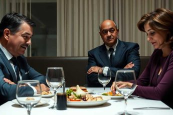 He crossed paths with his ex-wife, and jealousy turned his cheeks green. James met his ex-wife, and envy