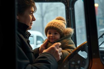The frosty morning air bit sharply as the bus rolled along the quiet country road, its wheels crunching