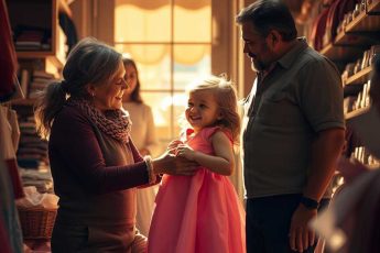 The man stood perfectly still, as if time itself had taken a coffee break. The little girl kept squeezing
