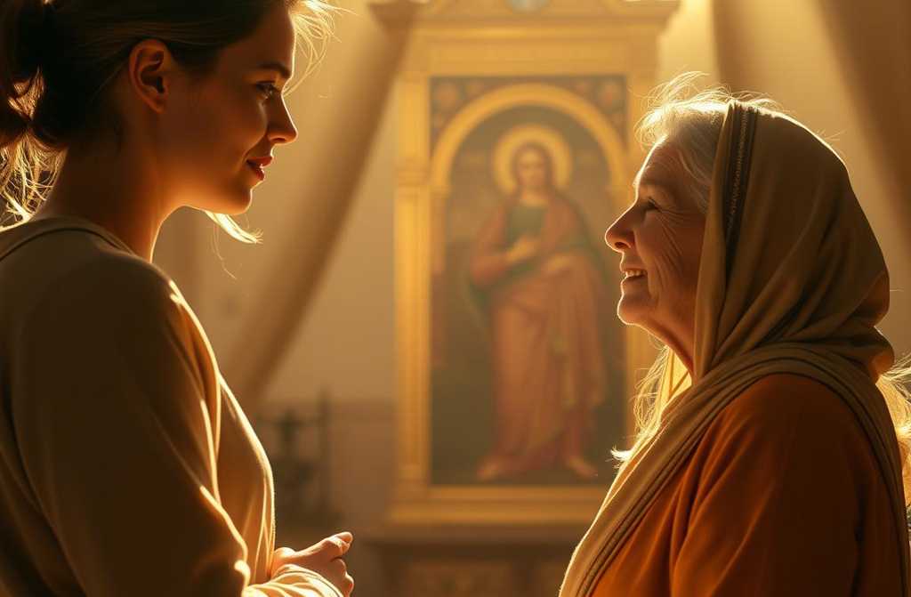 A service was underway, the congregation small. She moved forward, glancing aroundthis was her first time in a church. A large painting caught her eye: a young woman cradling an infant with gentle tenderness. Lily couldnt look away. After a while, an elderly woman in a headscarf whispered beside her,