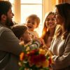In the evening the parents sit together at the kitchen table; apples in a vase give off a sharp scent.