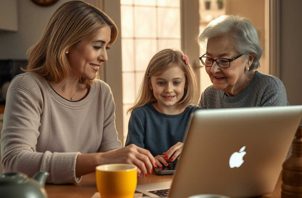 Grandmother watches intently. Curiosity and a hint of bewilderment flicker in her eyes. She remembers her own school daysno computers, no online lessonsyet now her granddaughter handles everything far better.