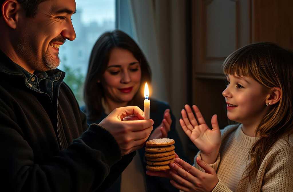 Without a word, Laura rose and headed to the fridge. There was no sponge cake or frosting, but she produced a packet of simple biscuits and a jar of jam. James couldnt help but smile: the gesture was absurd, yet utterly human. On the table quickly appeared a plate of biscuits, a mug of jam, and a small bowl of condensed milk. Tom playacted, hand to chin: