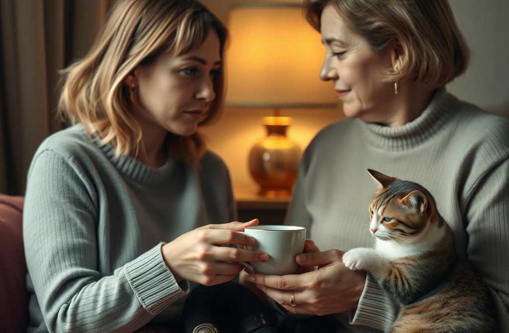 Emma stayed quiet, letting her talk. Misty purred in her lap, ignoring the guest.