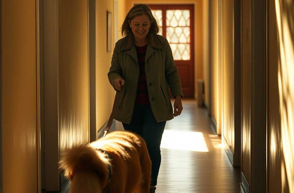 An hour later there was a knock. Kirk stood at the door, leash in hand, Duke bounding in, tail wagging. The dog lunged inside, leaving muddy paw prints on the spotless floor.