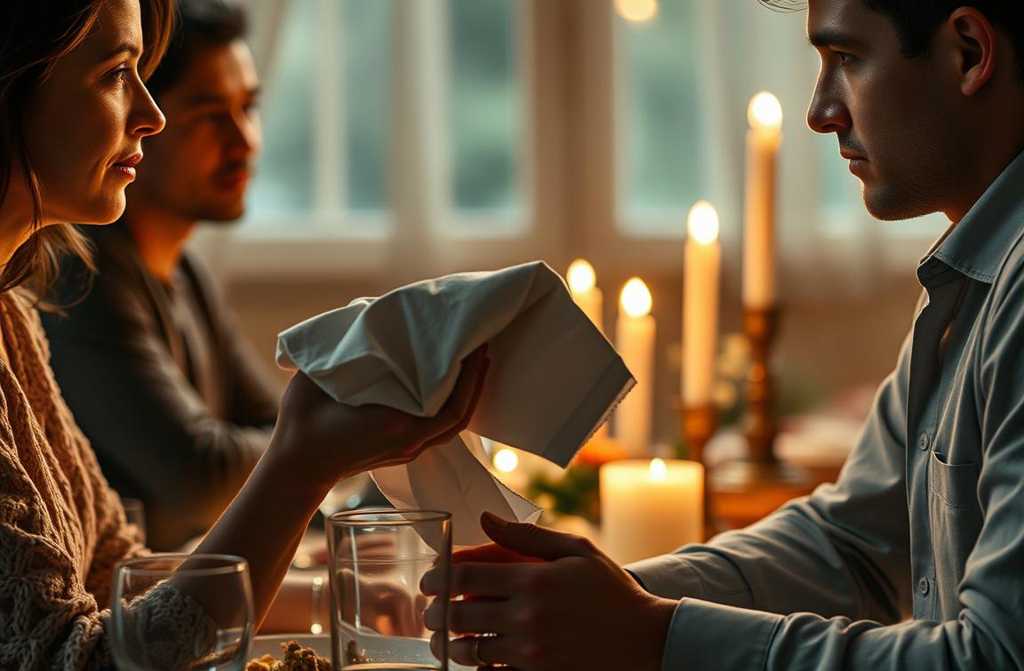 At the family dinner, I silently wrote a single word on a napkin and slid it across the table to my son. He paled and immediately led his wife away. The main course hadnt even been served, yet the air was thick with tension.