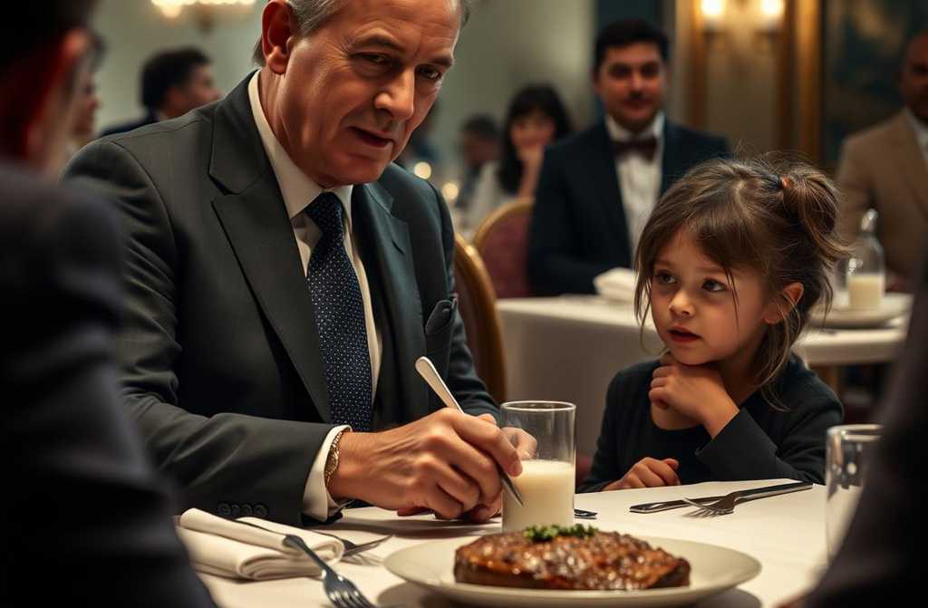 As he meticulously sliced into his Wagyu steak, the girls voice punctured the silence.
