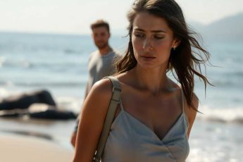 I was lounging on the beach with my husband when a woman approached, dropped to her knees before him