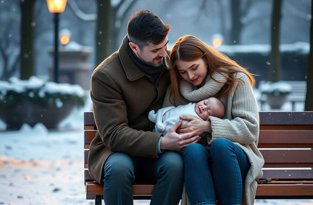 It must be over there! Michael points, hurrying toward the city park. On a bench already dusted with snow they spot a small bundle from which the wail emanates.