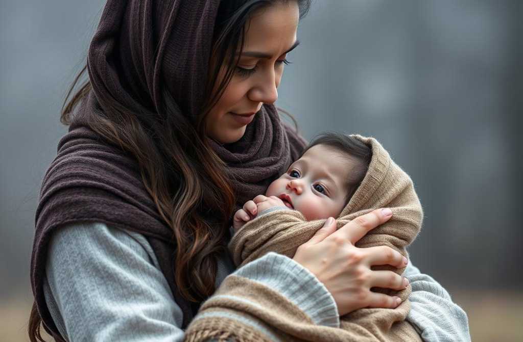 The bundle lay at her feet. A blue babygro, rosy cheeks, and wide, frightened eyes. A childa little girl wrapped in an old scarf with faded flowers. Silent, only staring up with tears glistening.