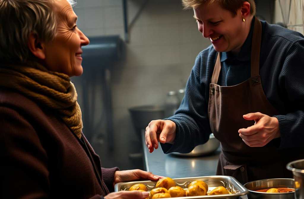 Der Geruch von gekochtem Kohl und billigem Brot, müde, gleichgültige Gesichter in der Schlange, das Summen der Gespräche ich verteilte gedankenlos Grießbrei und Gulasch. Und dann erstarrte ich.