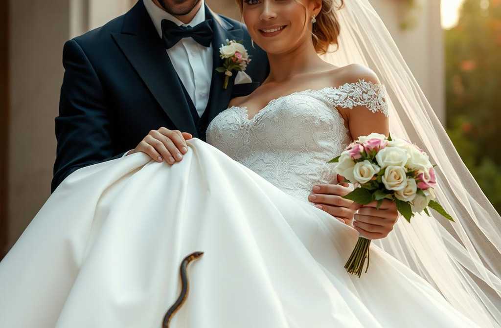 Right there, tangled in the tulle and lace, was a small snake. It wasnt aggressivejust lost, probably hitched a ride in with the flowers or while the dress was being prepared.