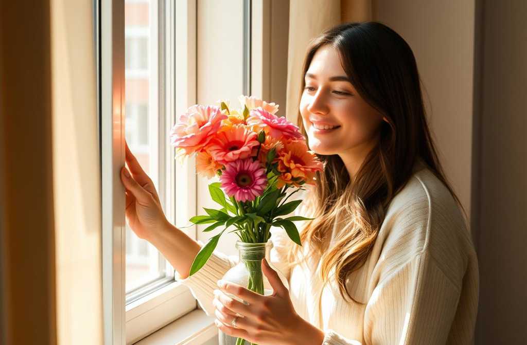 The new flat was small but bright. Emma placed a vase of flowers on the windowsill and hung her pictures.