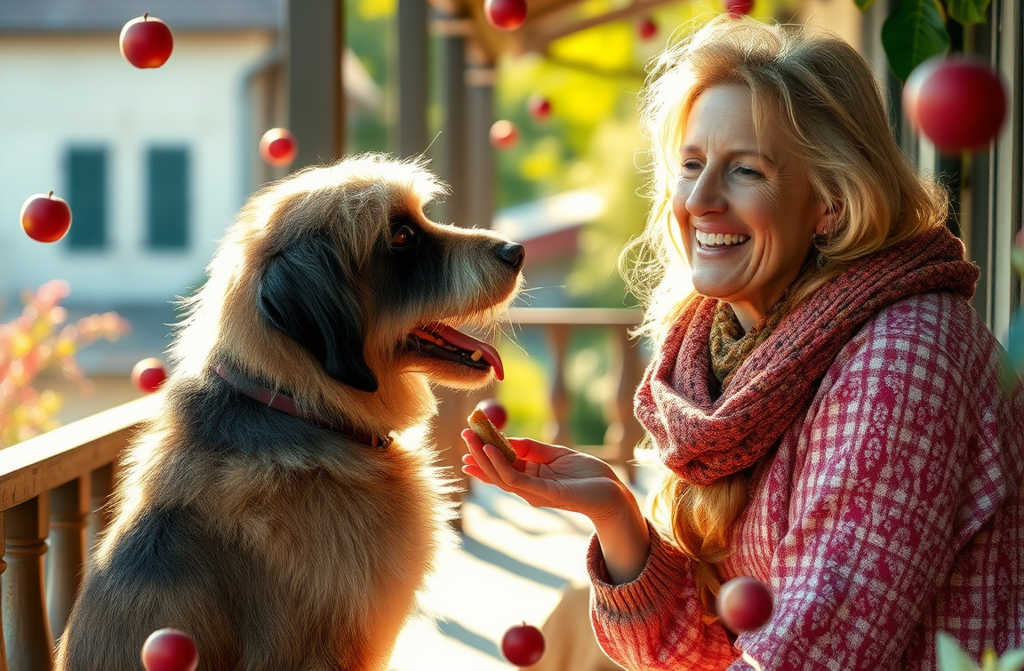 We sat together for a long while, sipping cherryinfused tea and exchanging stories. After his porridge, Patch curled up by the warm stove, sighing softly in his sleep, as if dreaming of something gentle. Outside, a light breeze coaxed the apple trees to sway, and ripe, red apples drifted down onto the grass, settling like small, orange suns.