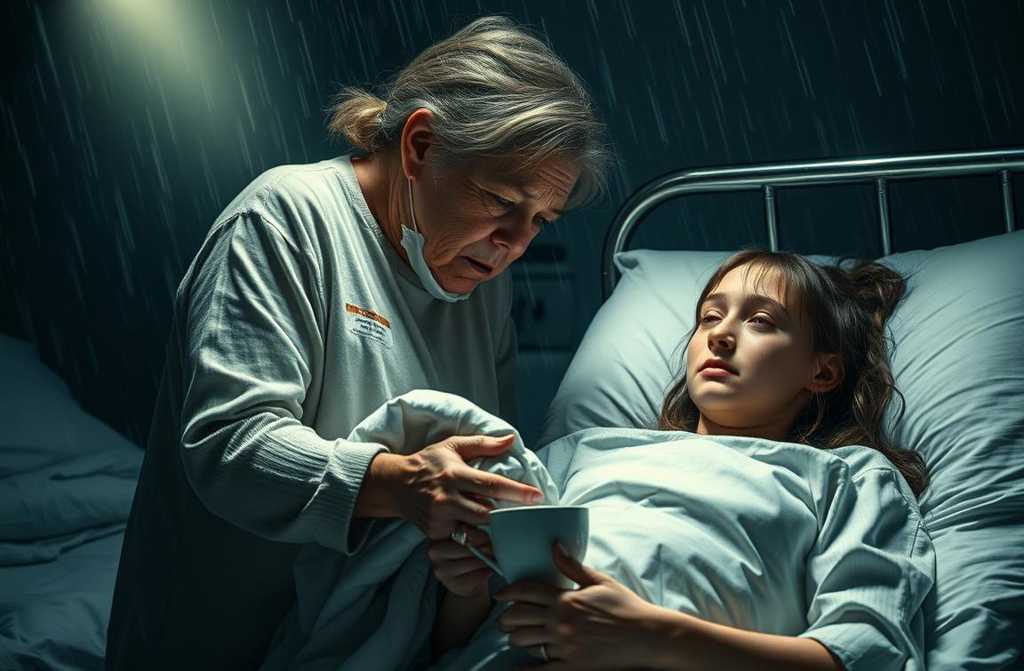 A dull light seeped in through the half-open corridor door. The smell of antiseptic and something medicinal hung in the air.