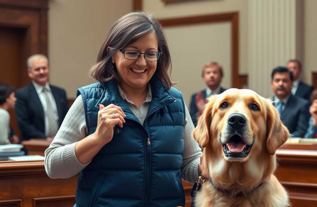 Heute war ein Tag, der mich tief erschüttert hat. In der Gerichtshalle des Landgerichts Frankfurt am Main sitzt Richter FrankMüller, dessen Name in der Stadt fast schon legendär ist ein Richter, bei dem sowohl Lachen als auch Tränen einen Platz finden. Am Montag betrat eine junge Frau mit einem goldenen Retriever, der eine blaue Weste trug, den Saal. Sie hieß Anneliese Schwarz und hielt einen weißen Spazierstock in der Hand. Anneliese ist von Geburt an blind.