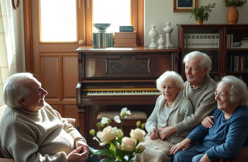 En el amplio salón, el piano ocupaba un lugar de honor, rodeado de sillones y butacas. Los primeros residentes fueron el abuelo Iván, la Señora Ana y la Señora Gloria, dos hermanas que habían perdido su hogar en un incendio, y pronto llegaron más.