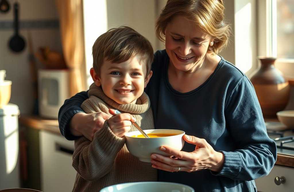 Ich habe Kartoffelsuppe. Möchtest du etwas davon? fragte sie, während sie die Wohnung betrat. Der kleine Gast nickte eifrig.
