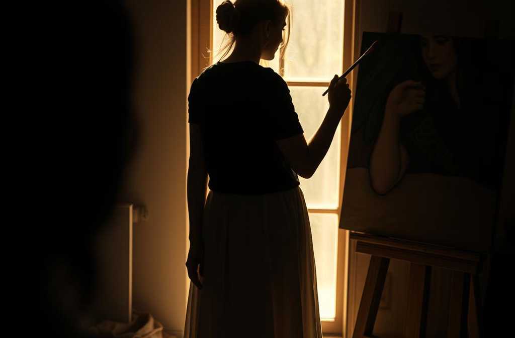 I dipped my brush into crimson without a word. The red spread across the canvas like something alive.