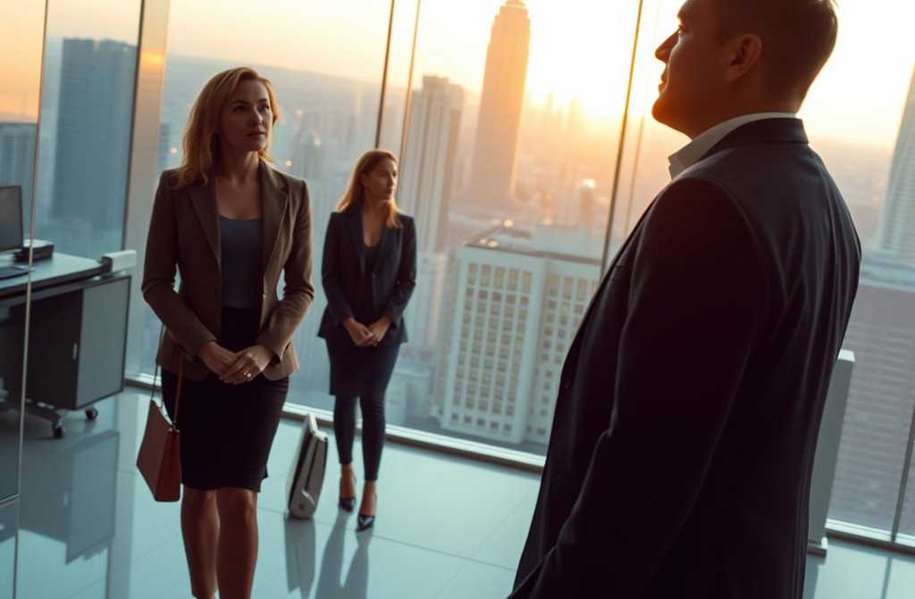 The elevator doors opened to a gleaming office. He straightened his tie, ready to impress.