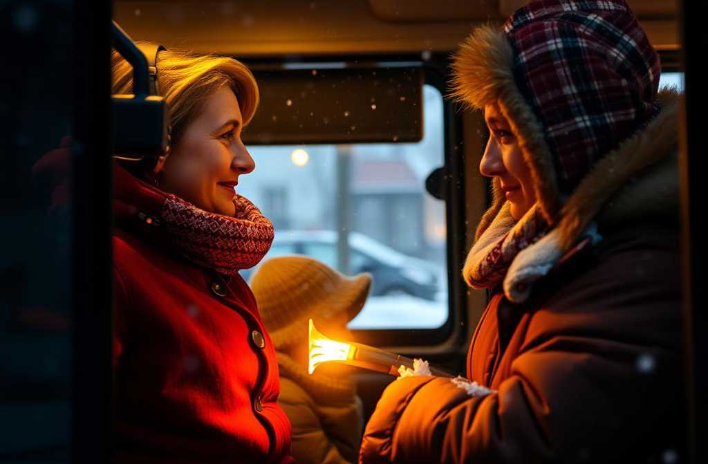 She climbed aboard carefully, as if afraid the boy might shatter. The warmth inside seemed to melt the ice from her coat, and she murmured a quiet thanks. The other passengers glanced up but said nothing. No one asked questions. No one needed to.
