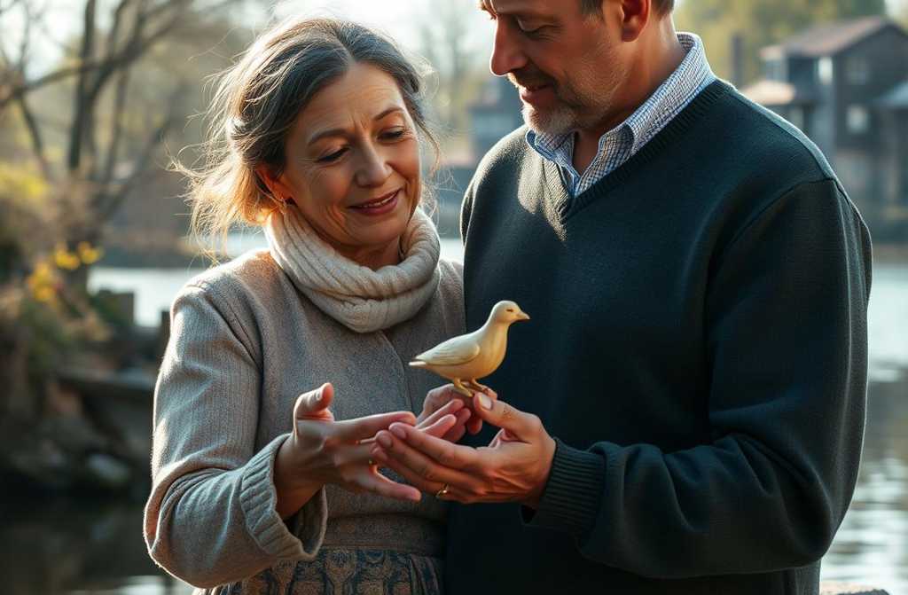 He placed a small carved bird in her hands. It was so lifelike, she felt it might take flight.