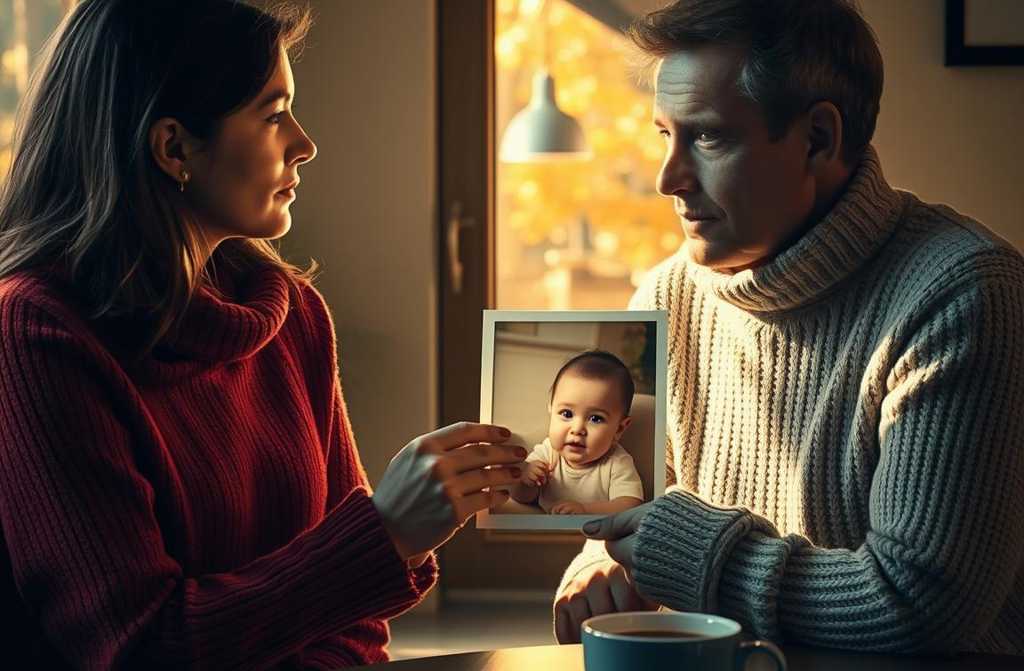 “Hes not your husband,” said Victoria, sliding the picture across the table to Emily. “Look at the baby. Really look.”
