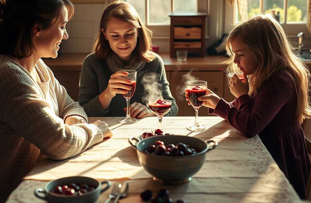 Emily wrapped her arms around her mothers shoulders and peered into the saucepan. The dark berries floated in syrup, filling the air with the familiar scent of childhood.