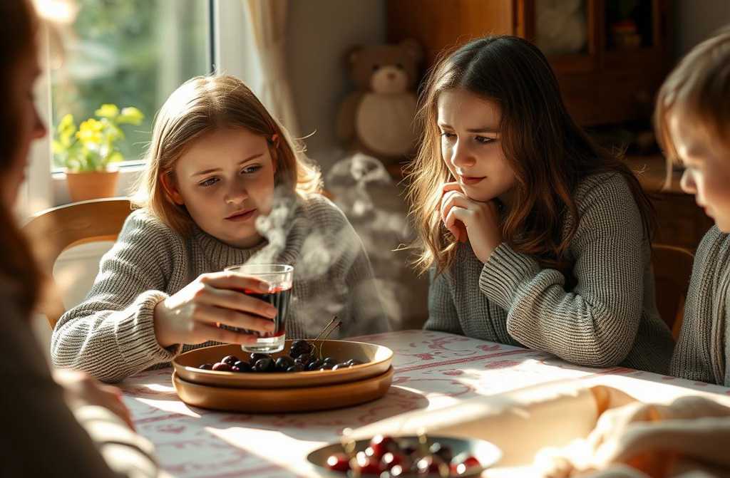 I hugged her from behind and peered into the pot. The dark berries floated in syrup, releasing the same comforting scent I remembered from childhood.