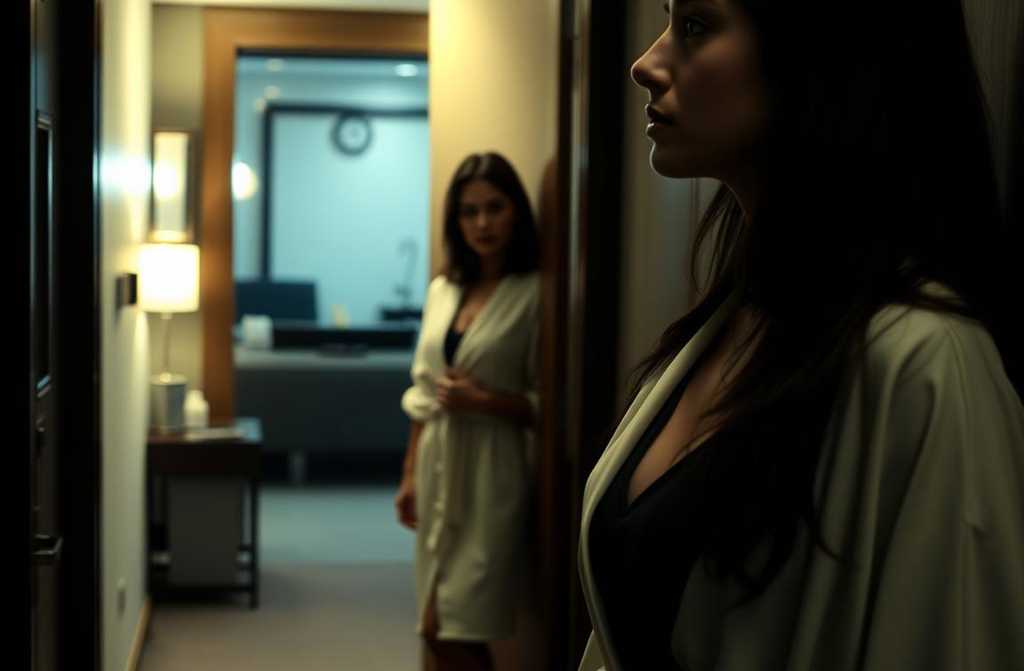 The hotel was elegant, all muted tones and hushed corridors. Approaching reception, I smiled. Im here to surprise my husbandcould you tell me his room number? The clerk tapped a few keys. Hes checked in already. Room 312.