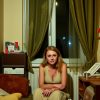 She perched on the edge of the battered sofa, a worn handbag shielding her knees.