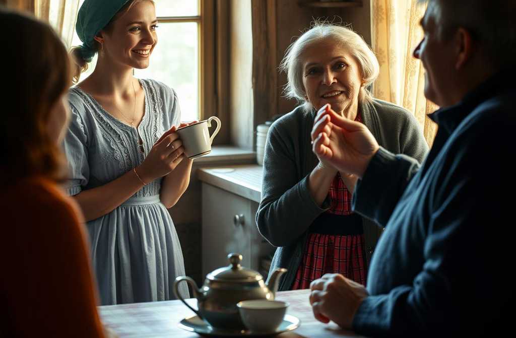 A week slipped by. Emily fell into the gentle village rhythmmorning garden, breakfast, afternoon chores, evenings of stitching or chatting.