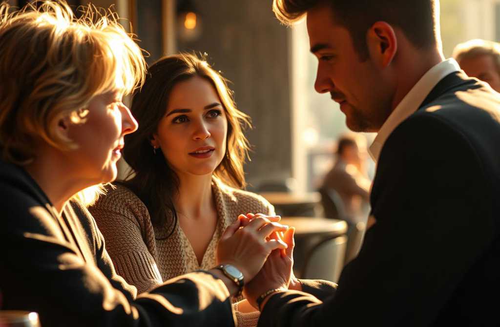 The world narrowed to their table. The clatter of cutlery, muffled chatter, hissing coffee machinesall faded into silence. My legs carried me forward as if skating on thin ice. My face stiffened; my knuckles whitened around the bag handles.