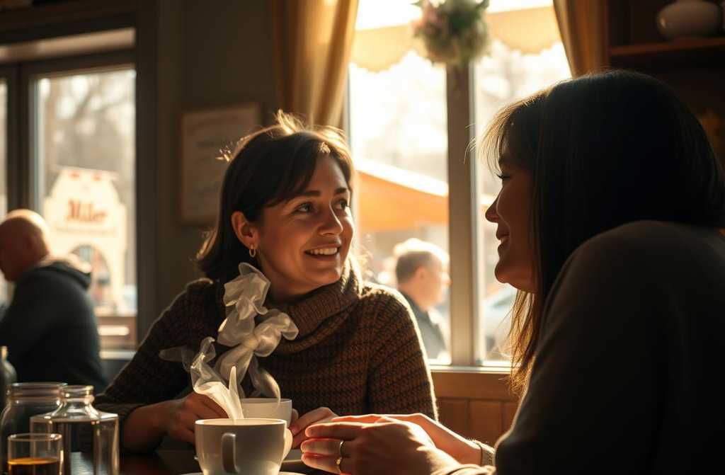 I watched as a waitress placed a cup in front of the woman beside me, her giggle cutting through the room.
