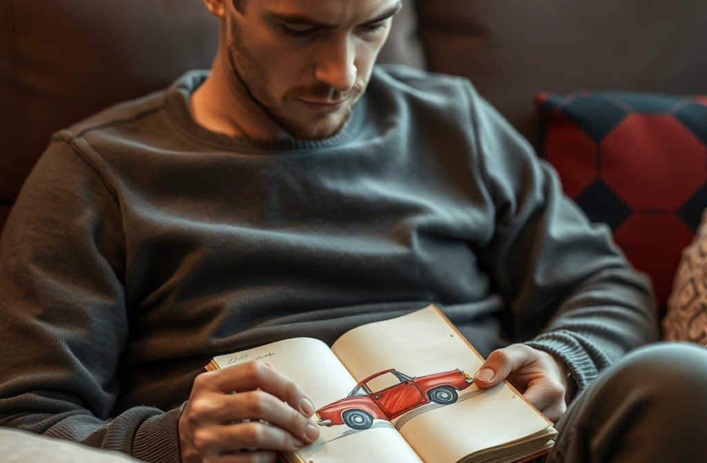 Er polierte alles bis zum Glänzen: Armaturenbrett, Türverkleidungen, Scheiben. Und als er schließlich unter die Sitze kam, stieß seine Hand auf etwas Hartes. Er zog ein kleines, dunkelblaues Notizbuch heraus. Ein Tagebuch.