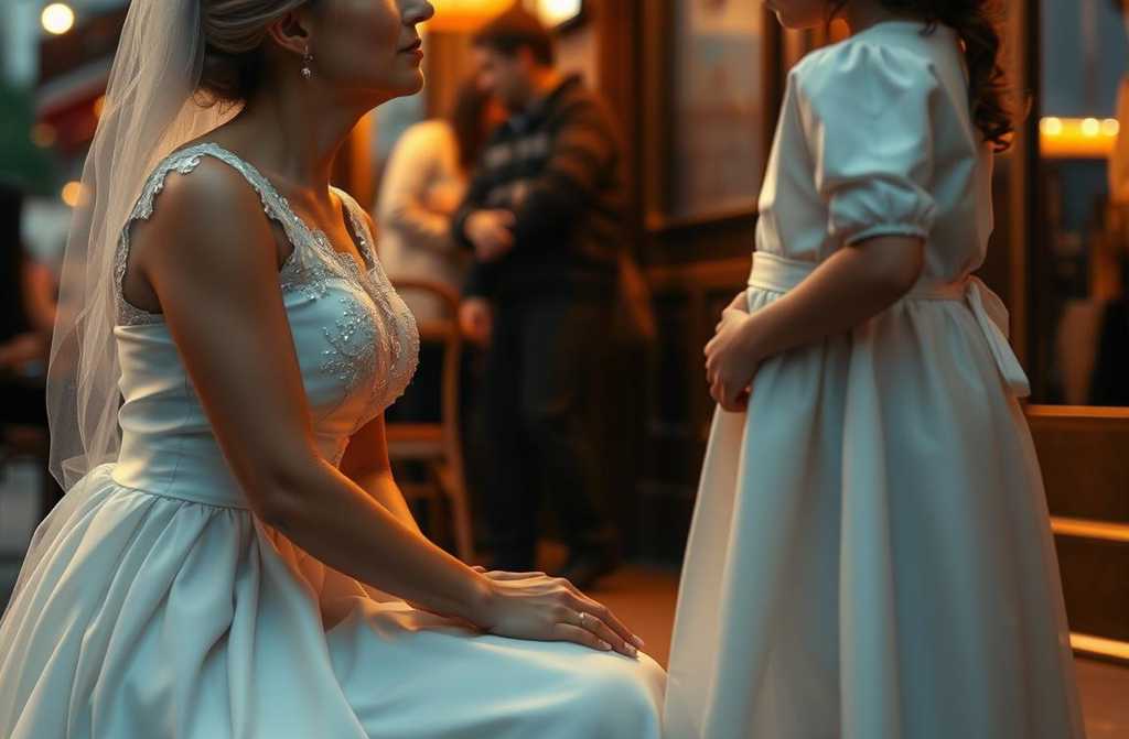 The bride in her ivory gown, rustling with every step, froze at the restaurant entrance. Inside, guests buzzed, music played, and a three-tiered cake waited beside the groomOliver. But the childs words landed like a thunderclap.