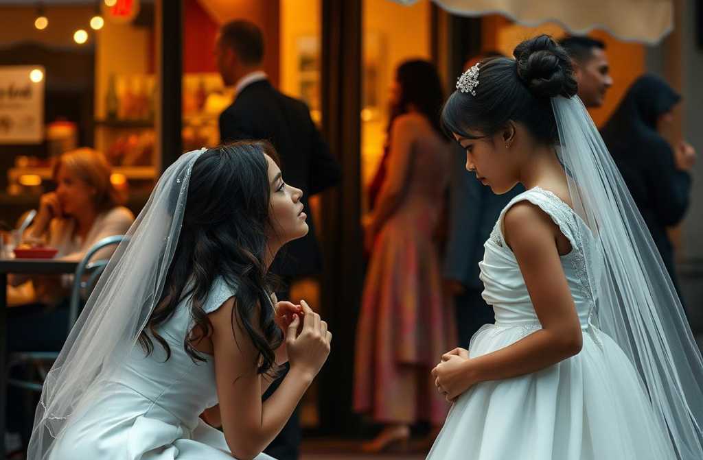 The bride in her ivory gown, rustling with every step, froze at the restaurant door. Inside waited guests, music, a tiered cake, and my groom, Oliver. But the childs words sliced through the hush like a slap.