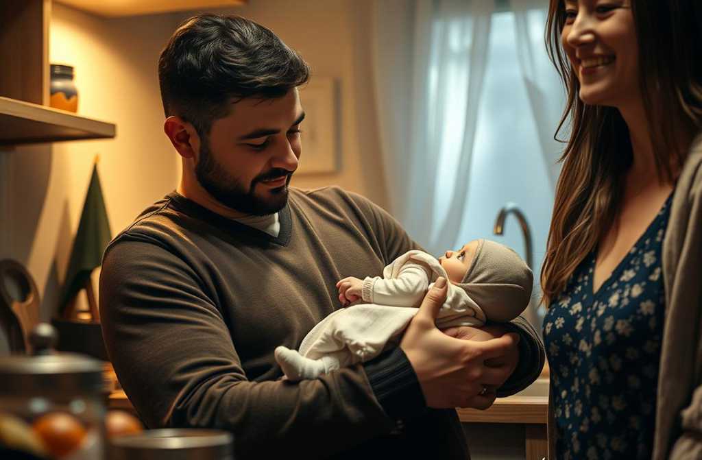 He lifted Lily gently. She hiccuped, then settled, staring at his face with big, serious eyes.