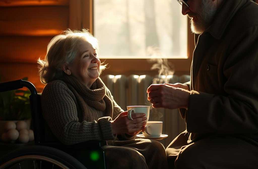 Blythe feels the palms of her hands slick, as if the cold metal of her wheelchair sears her skin. Edgar walks slowly but steadily, nudging her toward the little stone cottage nestled in the Yorkshire Dales. The door squeaks when he pushes it open, and inside the air is heavy with the scent of pine resin and old firesmoke.