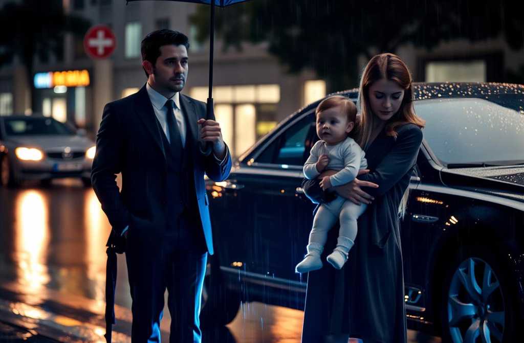 He was racing to the airport, already running late, when he spotted hera woman standing in the storm, clutching a small child to her chest. For a heartbeat, he told himself to keep driving. But the pang in his chest was too sharp to ignore. He pulled over, stepped into the rain, and approached her.