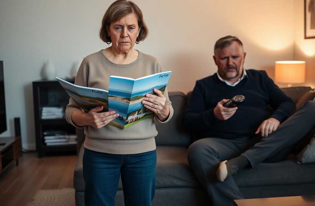 She set the brochure down slowly on the coffee table. Edward lounged in his armchair, channel-surfing, the flickering screen casting his face in indifferent blue light.