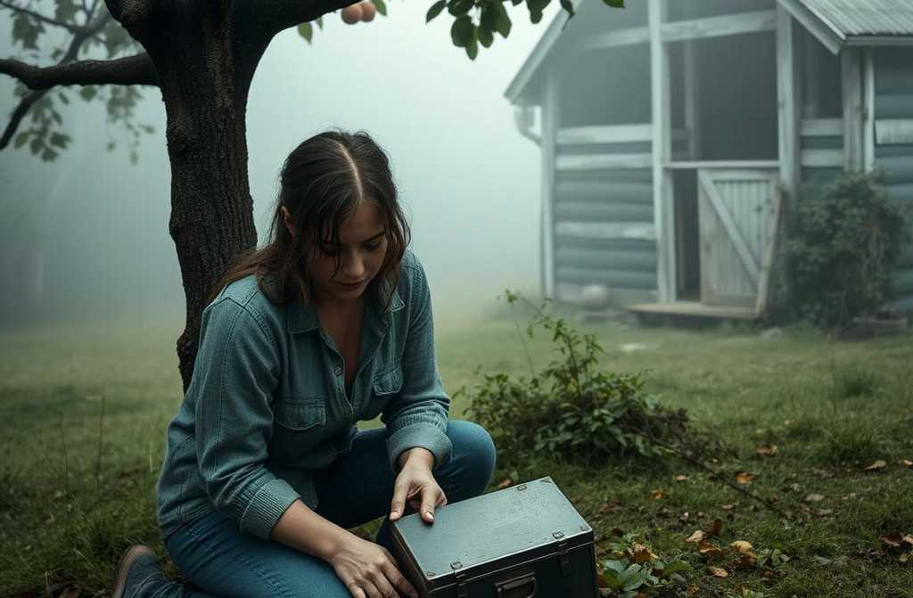 She dropped to her knees, scrabbling at the dirt with her hands. A small metal box, wrapped in layers of plastic. No lock, just a latch.