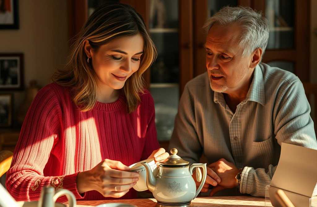 The sound of running water came from the bathroom. Margaret flicked on the kettle and reached for her favourite mug. Then she caught Beatrices voice from the parlour: