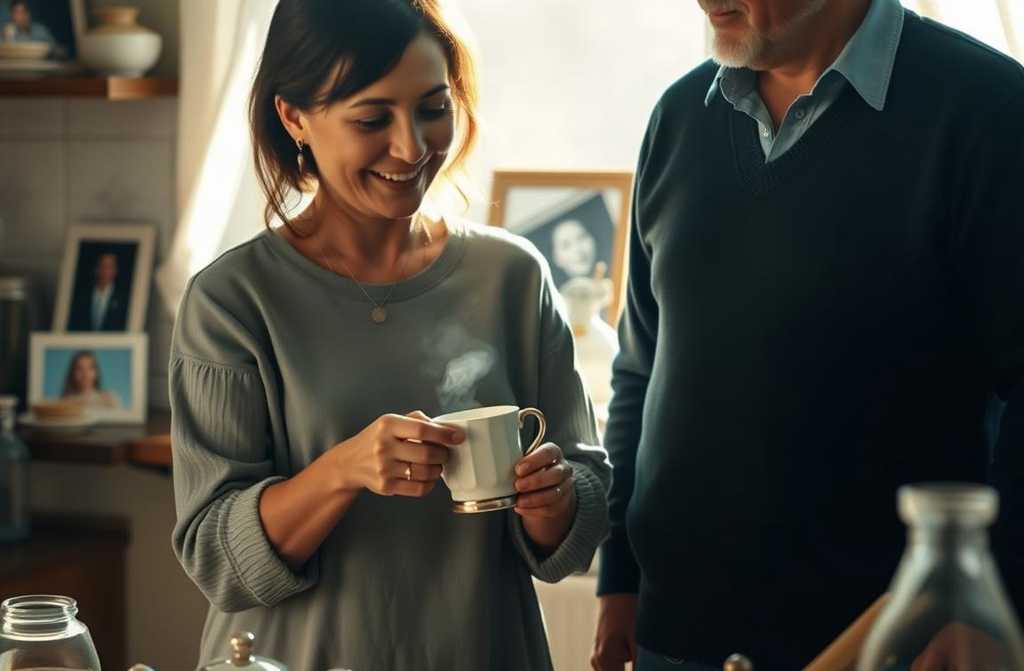 The shower hissed in the bathroom. Emily filled the kettle and reached for her favourite mug. Then she heard Charlottes voice from the living room: