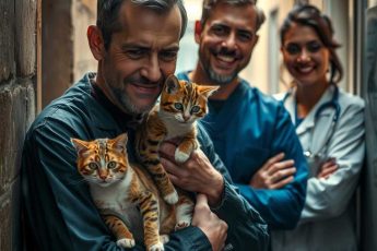 A faint mew reached Roberts ears. Glancing down, he spotted a tiny kitten, its mother desperately shielding