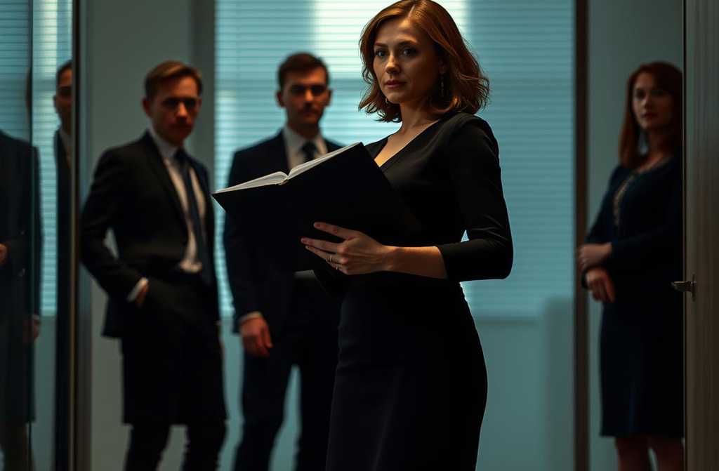 The room was stunned. Olivers colleagues, partners, even the CEO, Richard Thornton, stood motionless at the unexpected arrival of the poised woman in black.