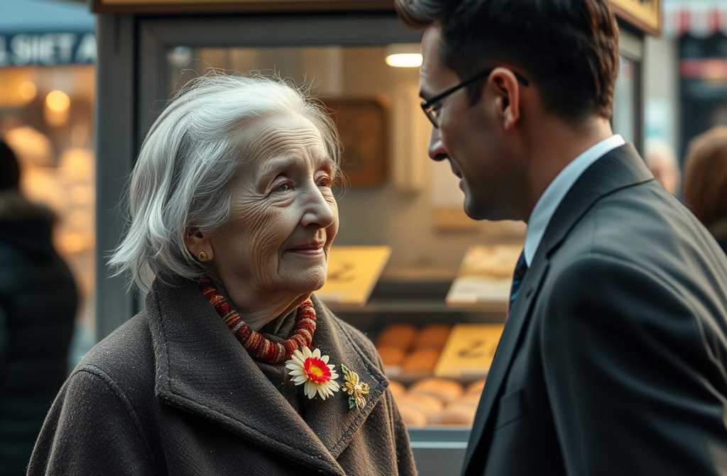 “Please, love, take pity on me… I haven’t eaten bread in three days, and I’ve not a penny to my name,” the elderly woman pleaded with the bakery stall owner.