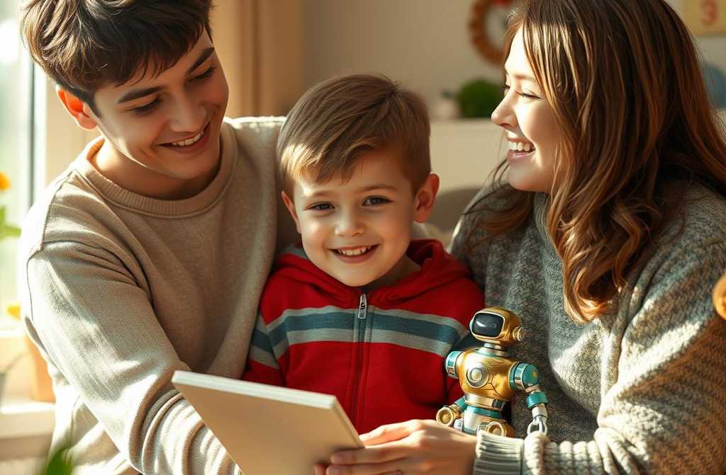 Thomas holte eine Tasche, zog ein Zeichenbuch, Buntstifte und einen riesigen, noch verpackten Roboter hervor. Der Roboter glänzte in neuen, bunten Farben, die Sonnenstrahlen durch das Fenster spiegelten. Sascha war sprachlos er hatte noch nie einen so großen Roboter gesehen.