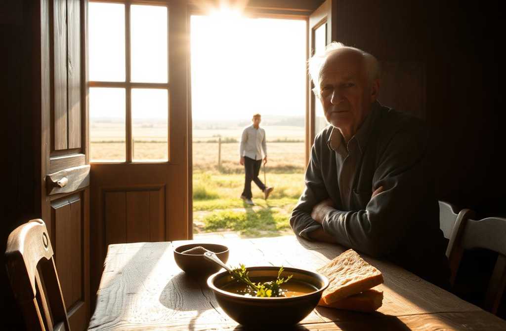 That day, he sat at the kitchen table, alone, ladling freshly made stew into a deep bowl. Summer heat hung heavy, the air shimmering over the fields. The door to the porch stood wide open, letting in lazy waves of scorched air. Suddenly, a shadow crossed the sunlight on the floor.